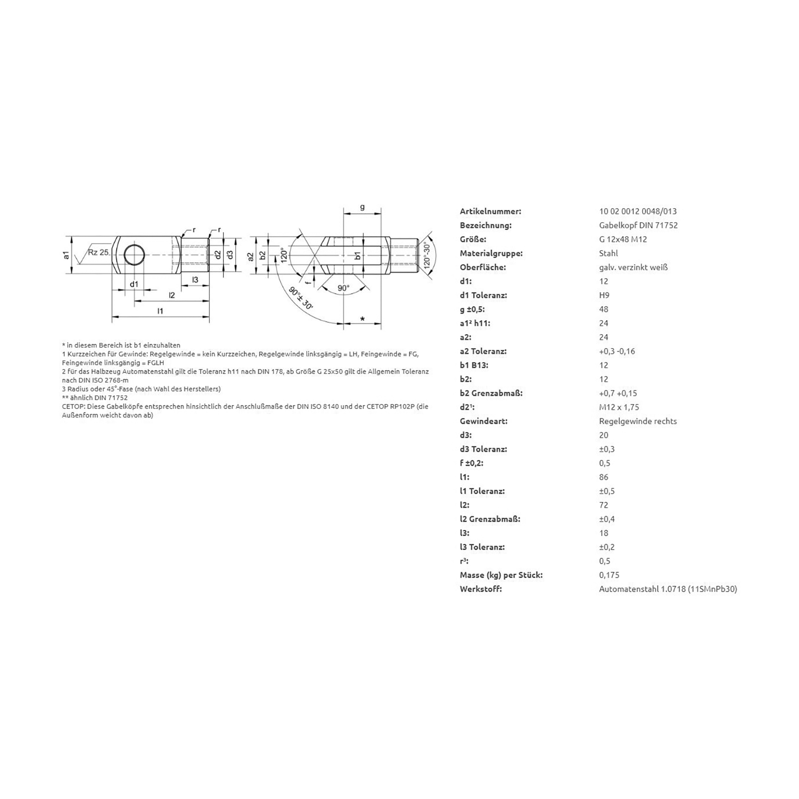 Setzen Sie auf ein langlebiges und passgenaues Verbindungselement für Ihre Anwendung. Bestellen Sie jetzt den Gabelkopf M12 und profitieren Sie von stabiler Technik, einfacher Montage und vielseitigen Einsatzmöglichkeiten.