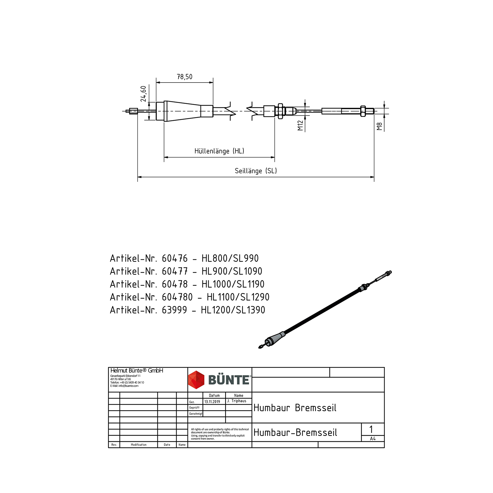 Durch die Kombination aus präziser Hüllenlänge, stabilem M8 Gewinde und Glockenanschluss lässt sich das Seil optimal in bestehende Bremsanlagen integrieren. Besonders bei Anhängern mit WAP Trommelbremsen sorgt dieses Bauteil für eine zuverlässige und sichere Bremswirkung.