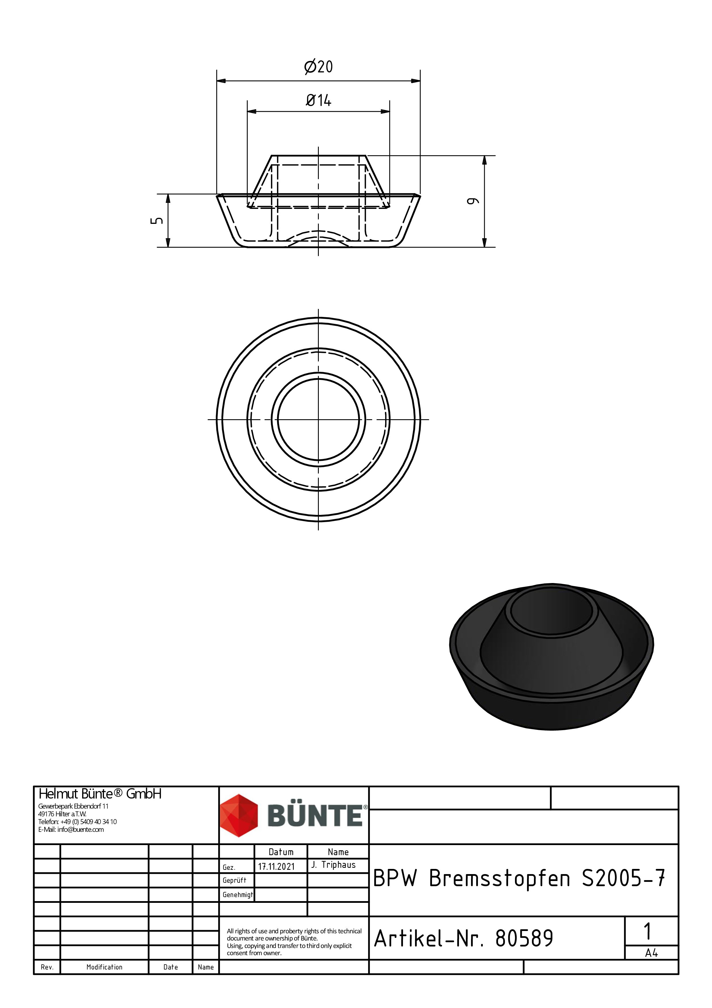 Der Verschlussstopfen verschließt die Serviceöffnung der Bremsankerplatte und verhindert das Eindringen von Schmutz, Staub oder Wasser in die Radbremse. Dadurch bleiben wichtige Komponenten wie Nachsteller, Bremsmechanik und Federn geschützt und funktionsfähig.