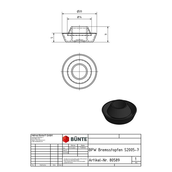 Der Verschlussstopfen ist speziell für verschiedene BPW Radbremsentypen entwickelt und bietet eine präzise Passform für eine schnelle und unkomplizierte Montage. Damit eignet er sich ideal für Wartung, Reparatur oder Austausch verschlissener Bremskomponenten an Anhängerachsen.