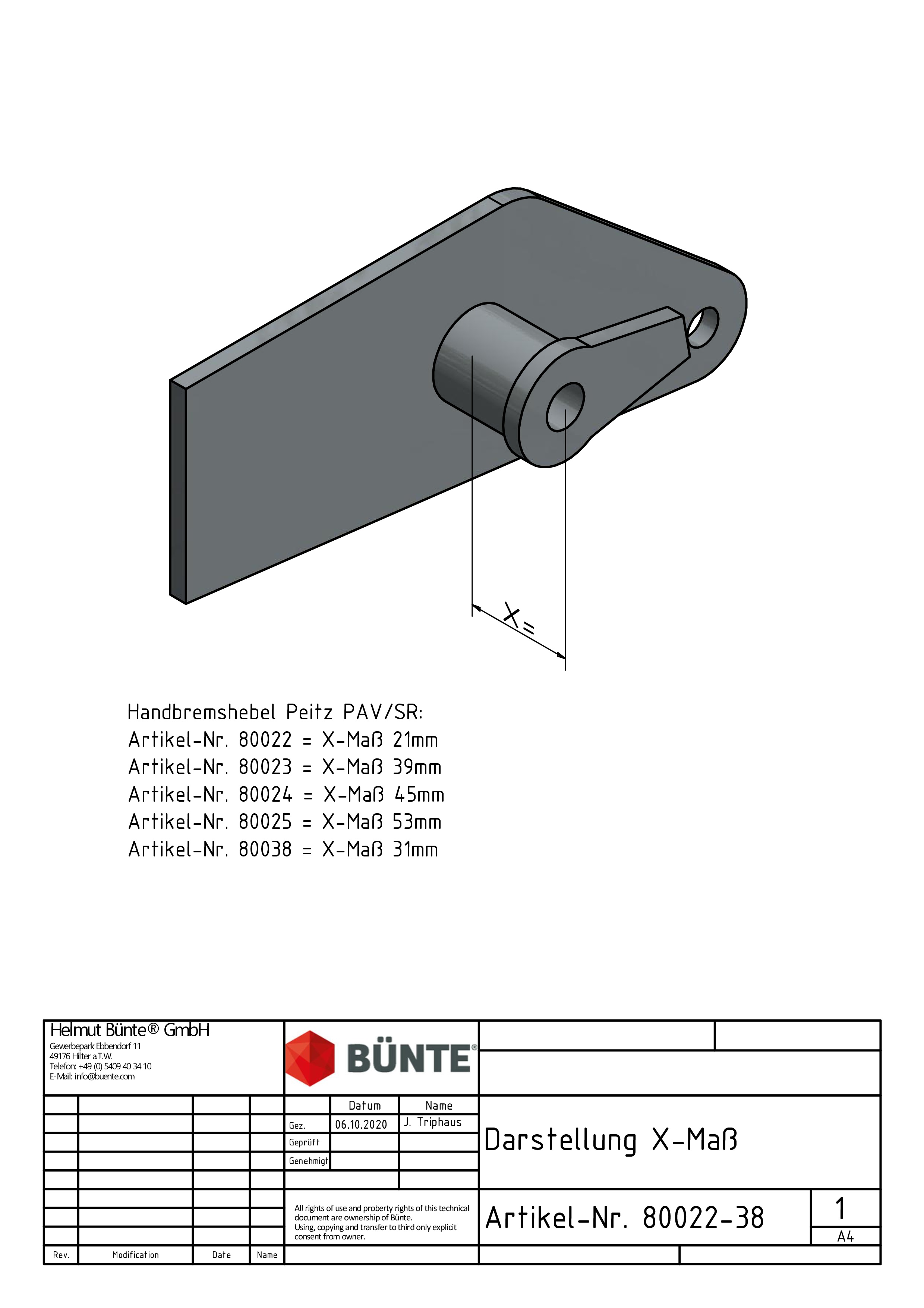 Handbremshebel für Peitz PAV/SR X=53 mm – zuverlässig & passgenau