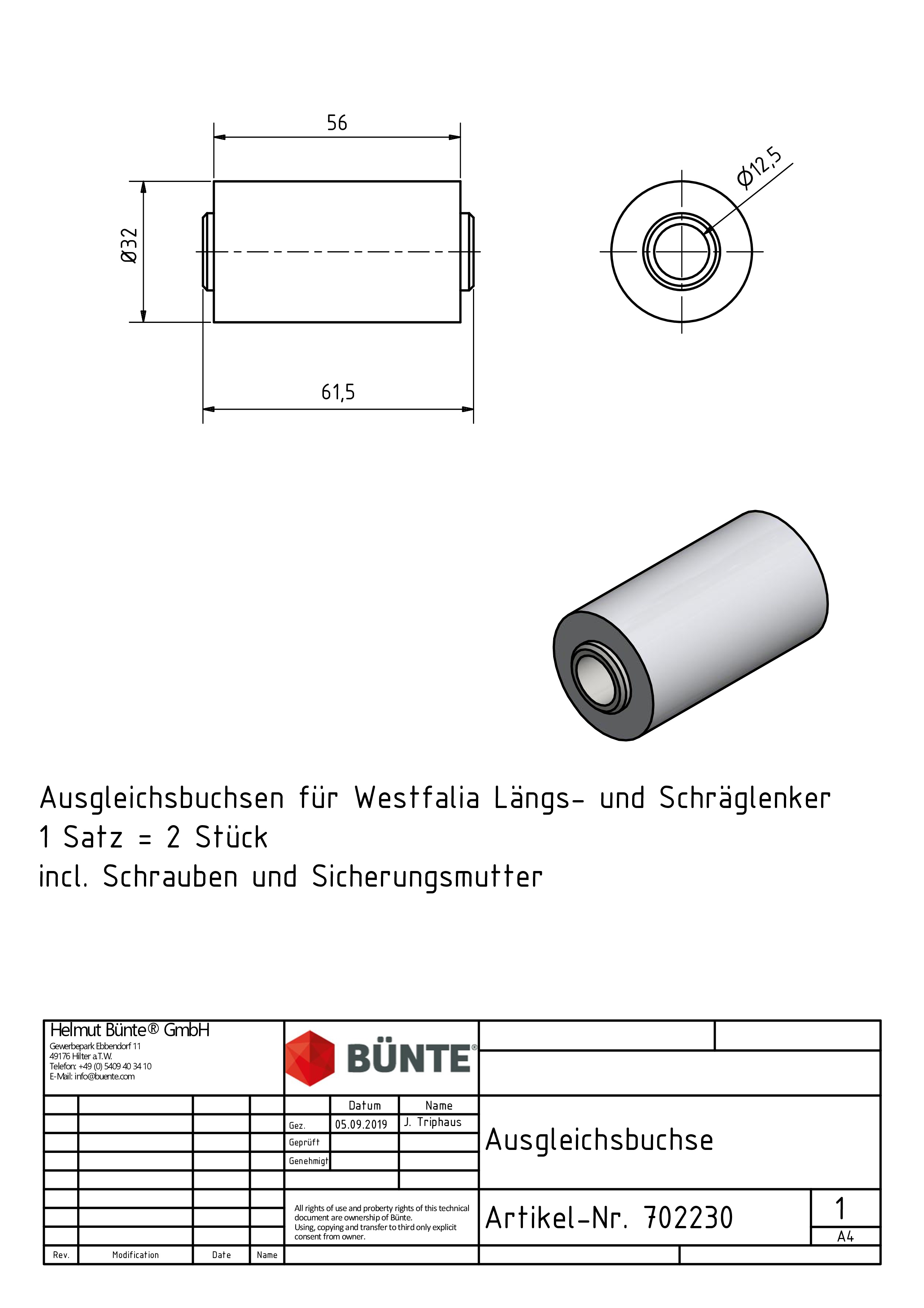 Der Buchsensatz ist optimal auf Westfalia Achssysteme abgestimmt und eignet sich für zahlreiche Modelle mit Längs- und Schräglenkern. Die präzisen Maße gewährleisten eine einfache Installation und sicheren Sitz.