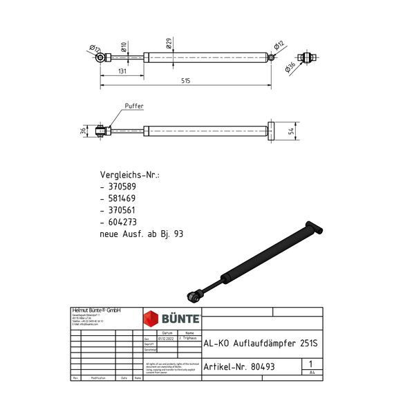 AL-KO Auflaufstoßdämpfer, f. 251 R/S, Ø 28 mm 505 mm, Bohrungen Ø 12 mm