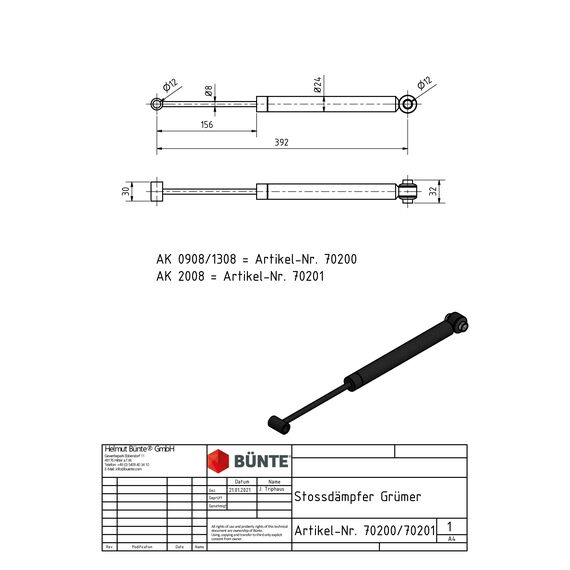 Auflaufstoßdämpfer, f. GRÜMER AK 0908/1308 Ø 24 mm, 390 mm, Bohrungen Ø 12 mm