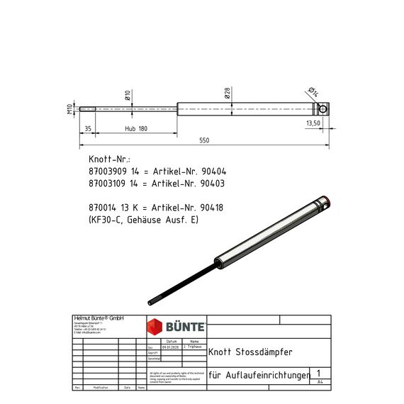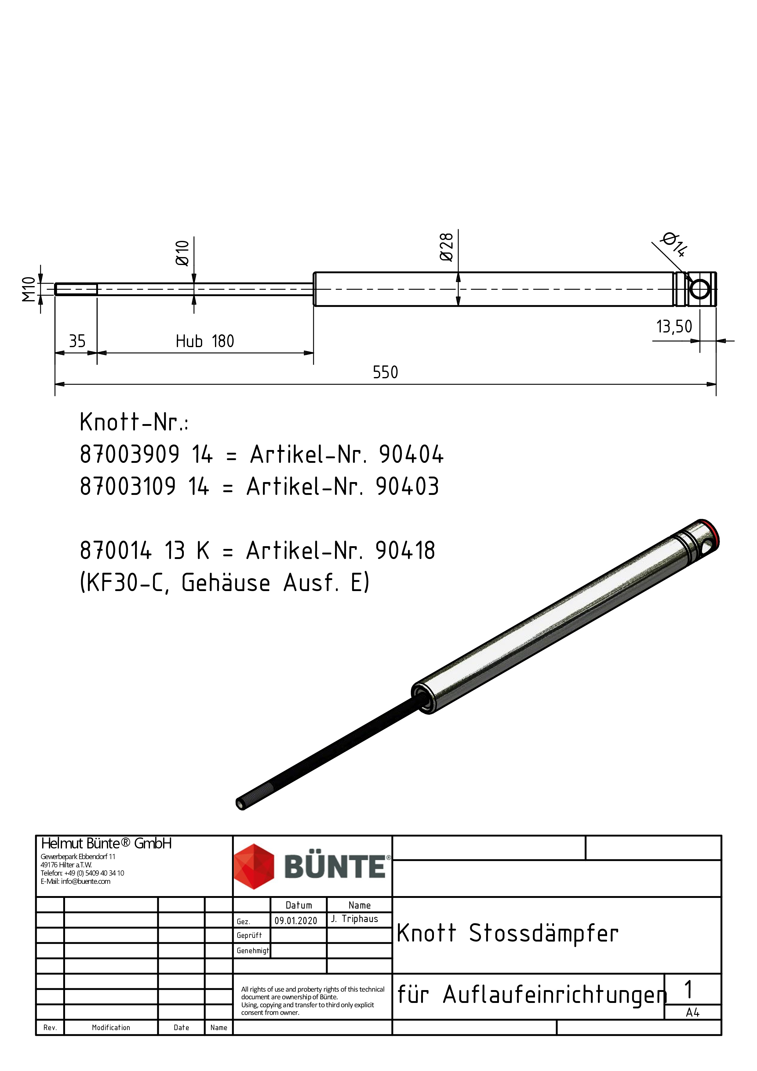 KNOTT Auflaufstoßdämpfer KF30-C (Geh. Ausf. E), Ø 14 mm