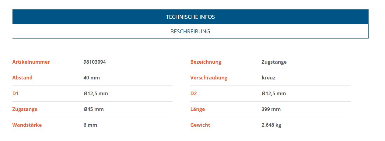 Die Knott Zugstange Ø 45 mm ist optimal abgestimmt auf zahlreiche gängige Knott Auflaufeinrichtungen wie KF, KR, KFG und KV Serien. Dank präziser Fertigung gewährleistet sie eine exakte Passform und unterstützt die sichere Funktion Ihrer Auflaufbremse – ein entscheidender Faktor für kontrolliertes Bremsen und stabiles Fahrverhalten.