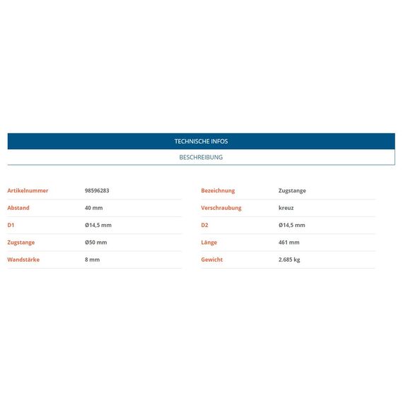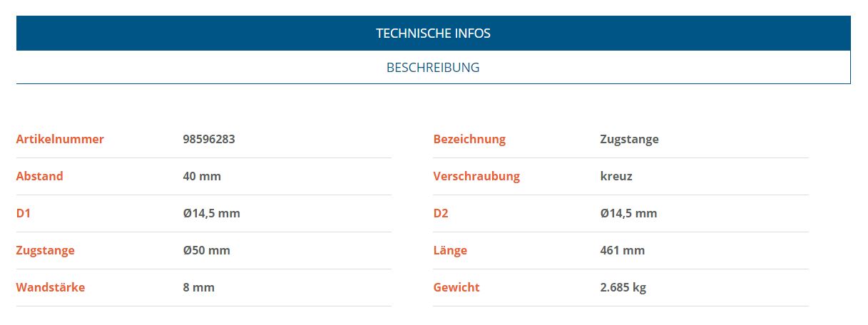 Die standardisierten Maße und Bohrungen ermöglichen eine unkomplizierte Montage. Dadurch eignet sich die Zugstange ideal als Ersatzteil für defekte oder verschlissene Komponenten bei: