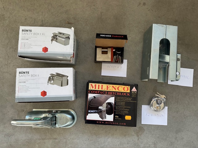 SONDERPOSTEN – Diebstahlsicherungen & Zubehör für Anhänger-Kugelkupplungen, bestehend aus: