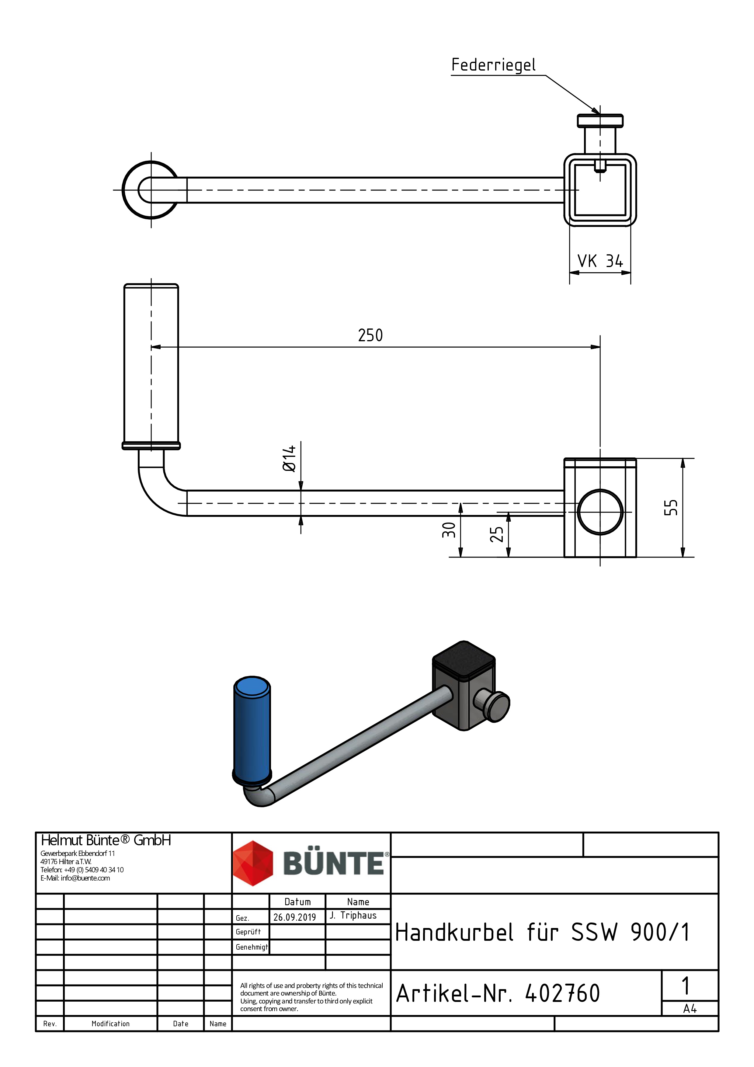 SCHLEGL Handkurbel, blau, für Seilwinde SSW900/1