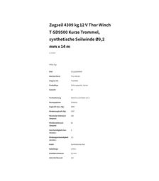 THOR WINCH T-SD9500, kurze Trommel, 4309 kg, 12 V