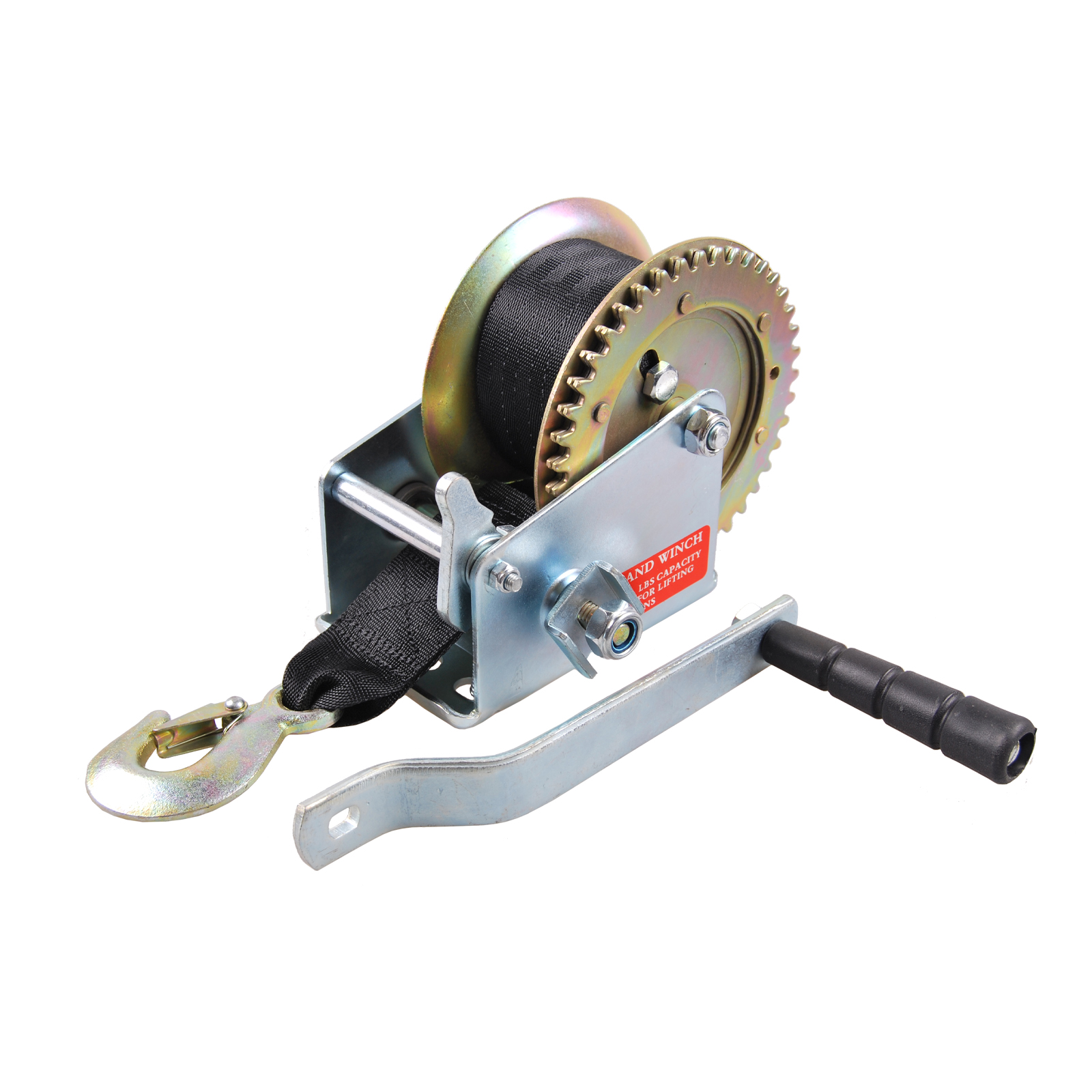 Seilwinde, Zuglast 545 kg, mit 50 mm x 8 m Gurtband, Getriebeuntersetzung 4:1