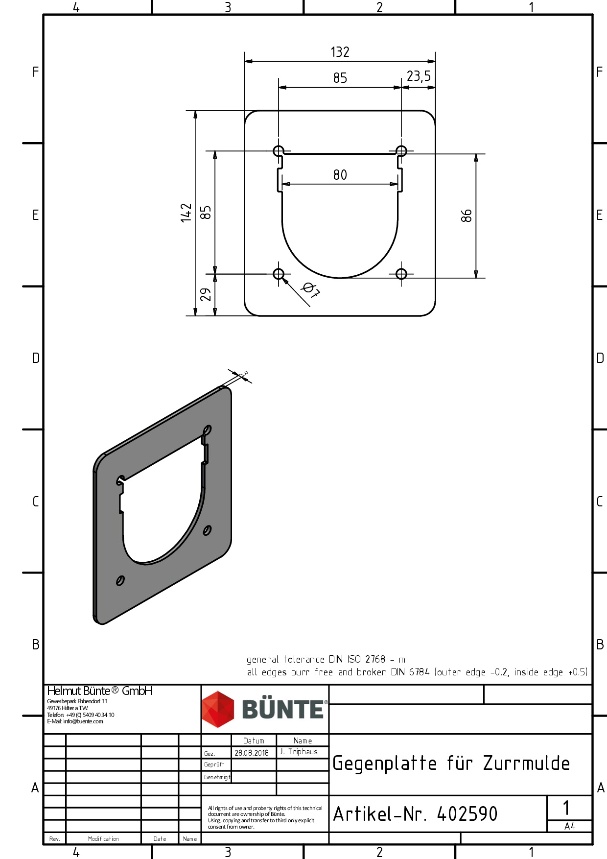 BÜNTE Gegenplatte für Zurrmulde 40259,  verzinkt, 131 x 142 mm