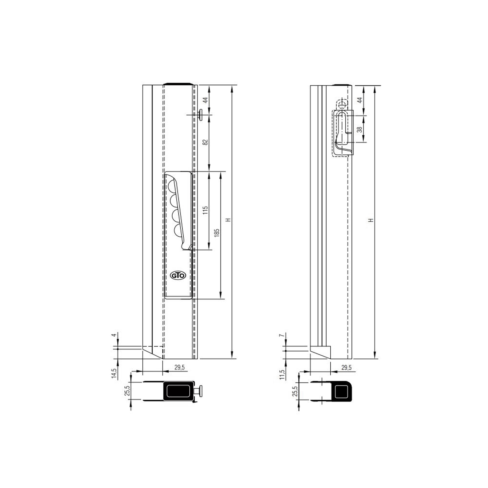 GTO 1-Plus Einbauverschluss über Eck, rechts