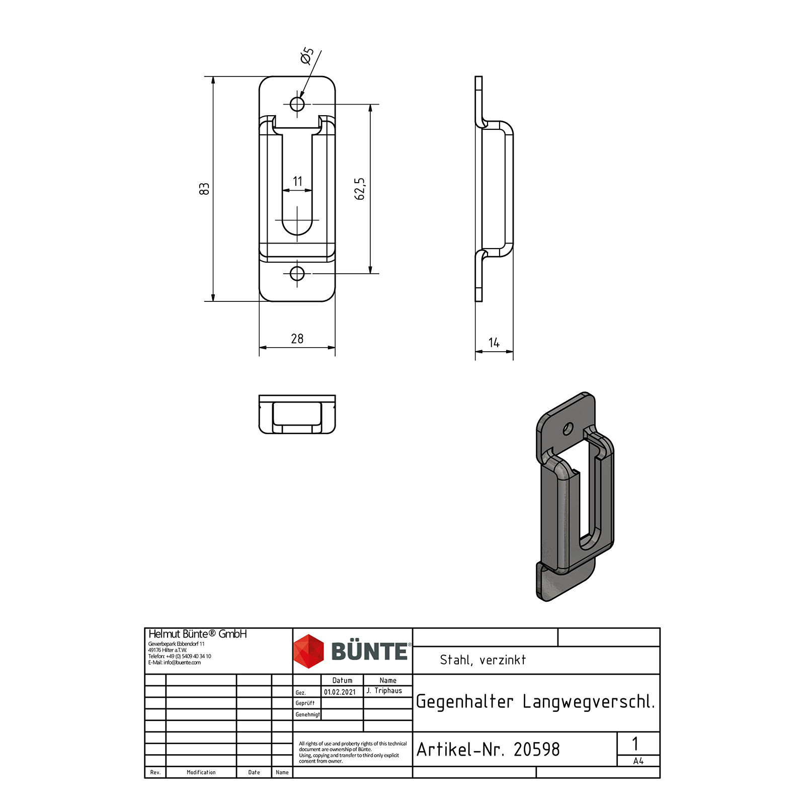 KNOTT Gegenhalter, f. Langwegverschluss, zum Anschrauben, Stahl verzinkt