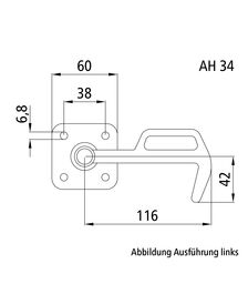 HESTAL Winkelhebelverschluss 6121N links m. Druckknopfsicheru...