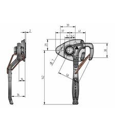 Kastenverschluss, rechts, Größe 0 Hebellänge 116 mm, m. Bügel...