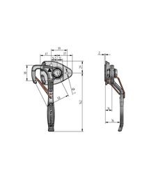 Kastenverschluss, links, Größe 0 Hebellänge 116 mm, m. Bügelg...