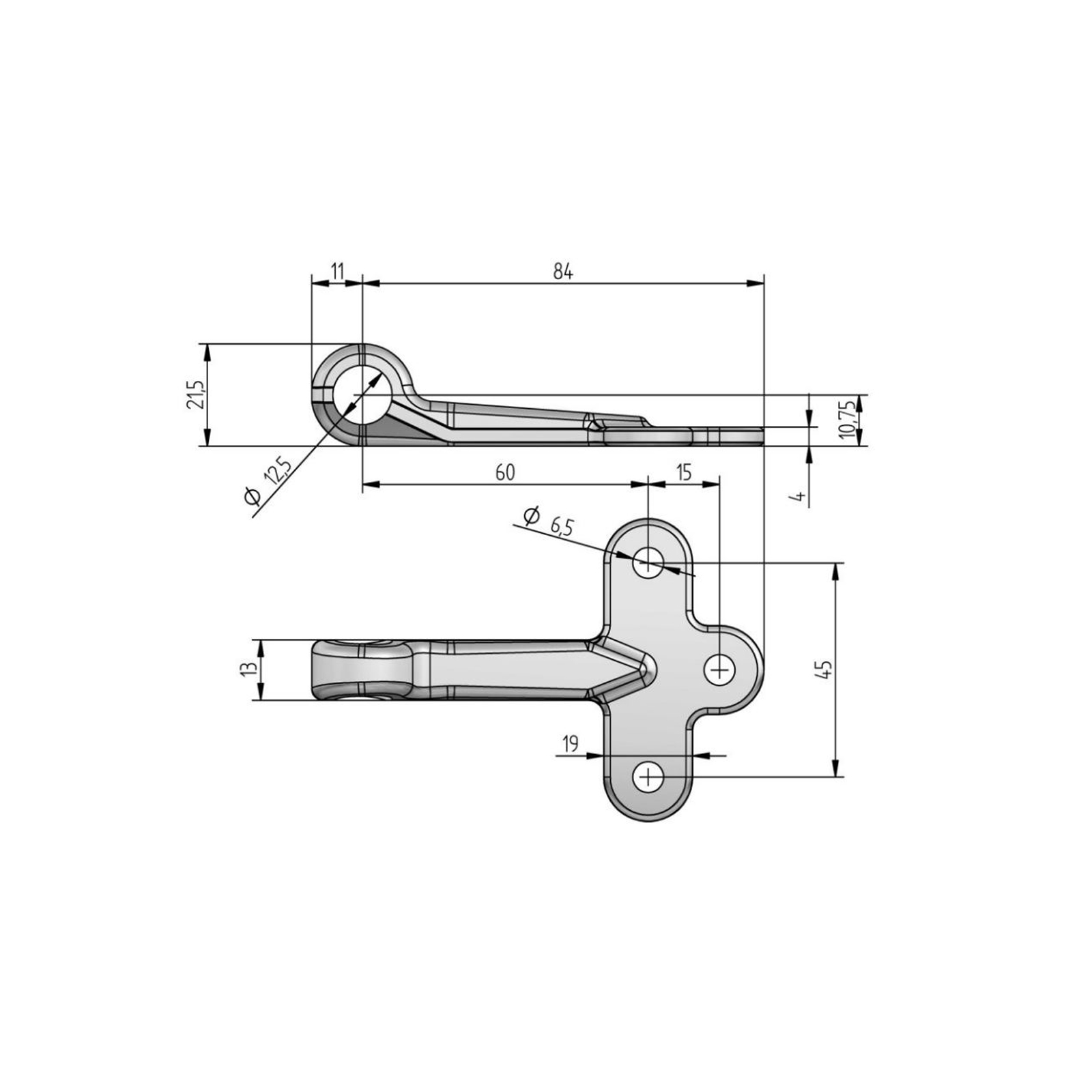 FBS Anschrauböse, Größe 0, 95 mm lang, Öse ⌀ 12,5 mm, Bohrungen ⌀ 6,5 mm, Lochabstand 15/45 mm, Stahl verzinkt