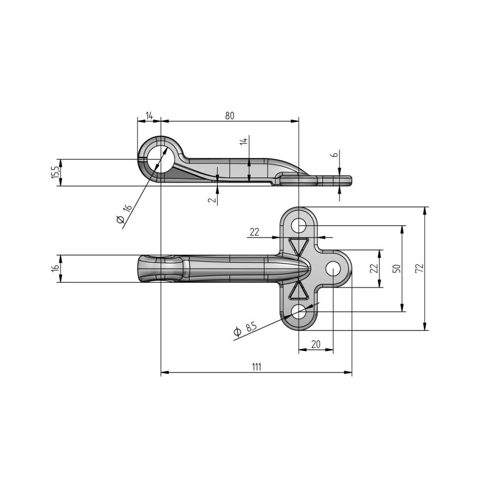 FBS Anschrauböse, Größe 1, 125 mm lang, Öse ⌀ 16 mm, Bohrungen ⌀ 8,5 mm, Lochabstand 20/50 mm, Stahl verzinkt