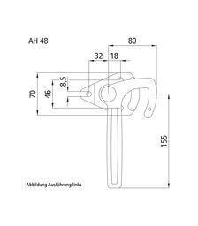 Winkelhebelverschluss, links, Größe 1 Hebellänge 155 mm, Stah...