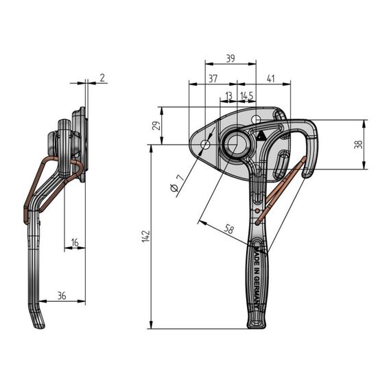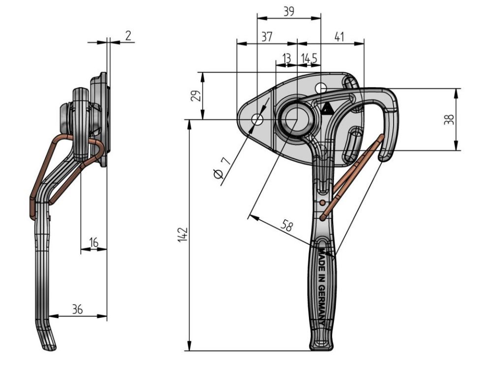 • Federsicherung: Patentierte Sicherungsfeder verhindert ungewolltes Öffnen während der Fahrt.