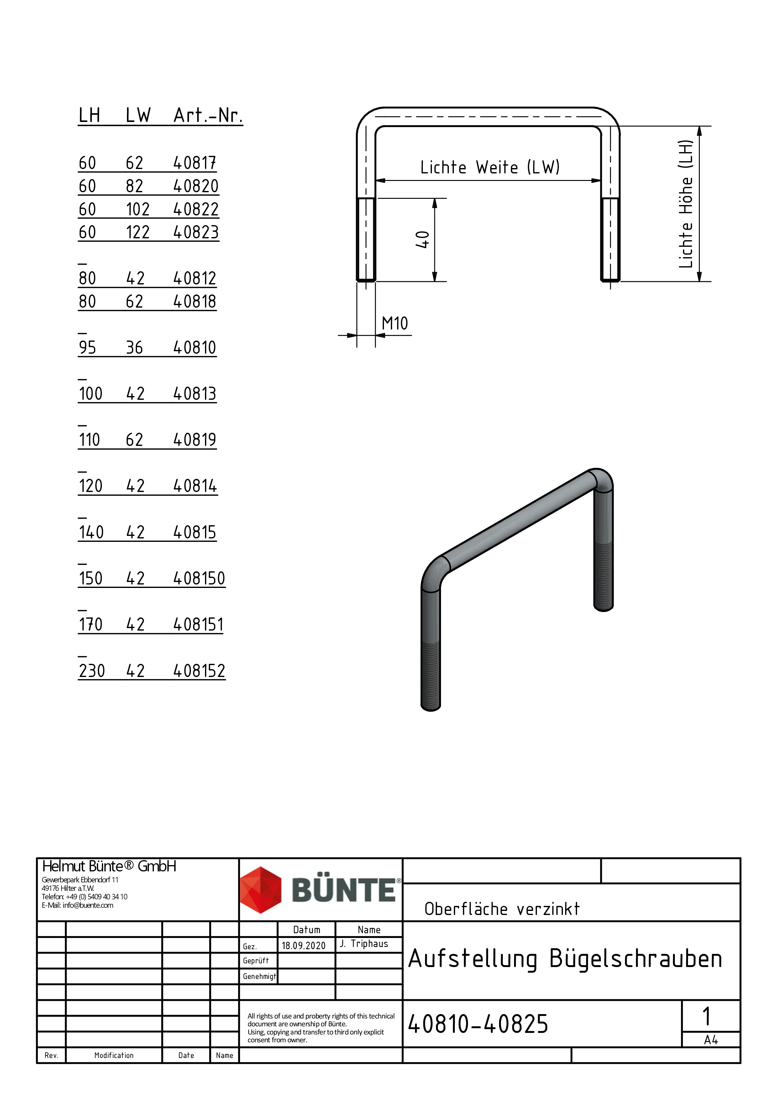 Bügelschraube, M10, LH 150 mm, LB 42 mm