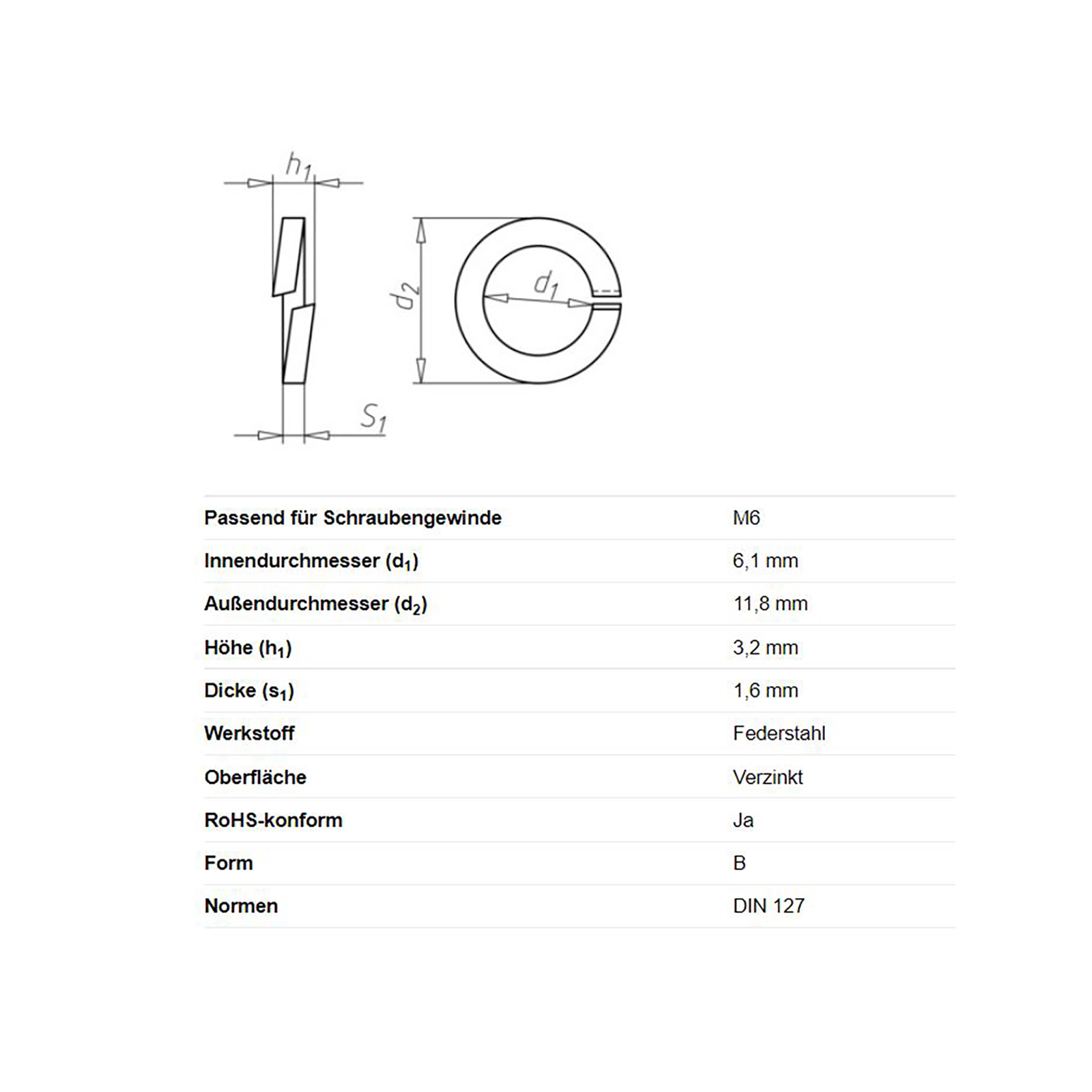 Federring m. Querschnitt, Ø 6,1/11,8 x 3,2 mm DIN 127