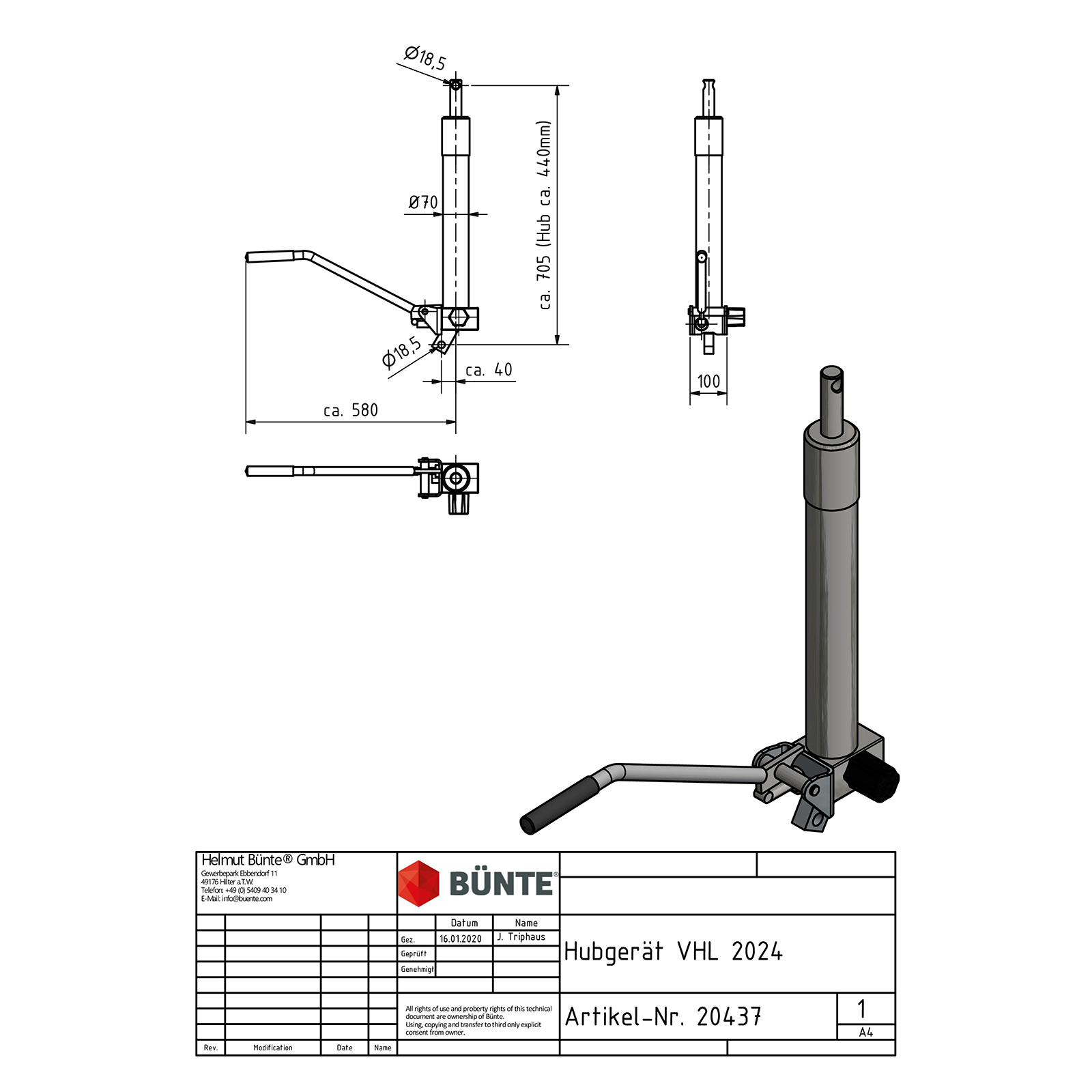 Hubgerät VHL 2034-444, 444 mm Hub f. PWK-Transporter, wartungsfrei, m. Öl befüllt