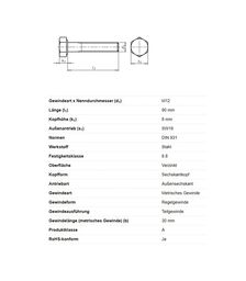 Sechskantschraube m. Schaft, M12 x 90 mm Schlüsselweite 19, D...