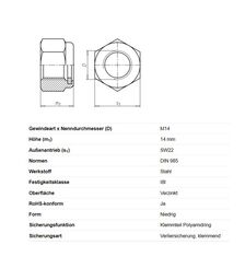 Sechskantmutter selbstsichernd, M14 x 14 mm Schlüsselweite 22...