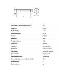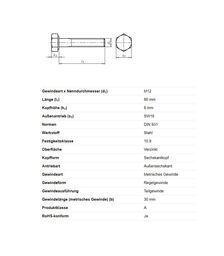 Sechskantschraube m. Schaft, M12 x 80 mm Schlüsselweite 19, D...