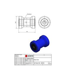 Kielrolle, Ø 80/60 x 185 mm, Bohrung Ø 21 mm, blau Polypropylen
