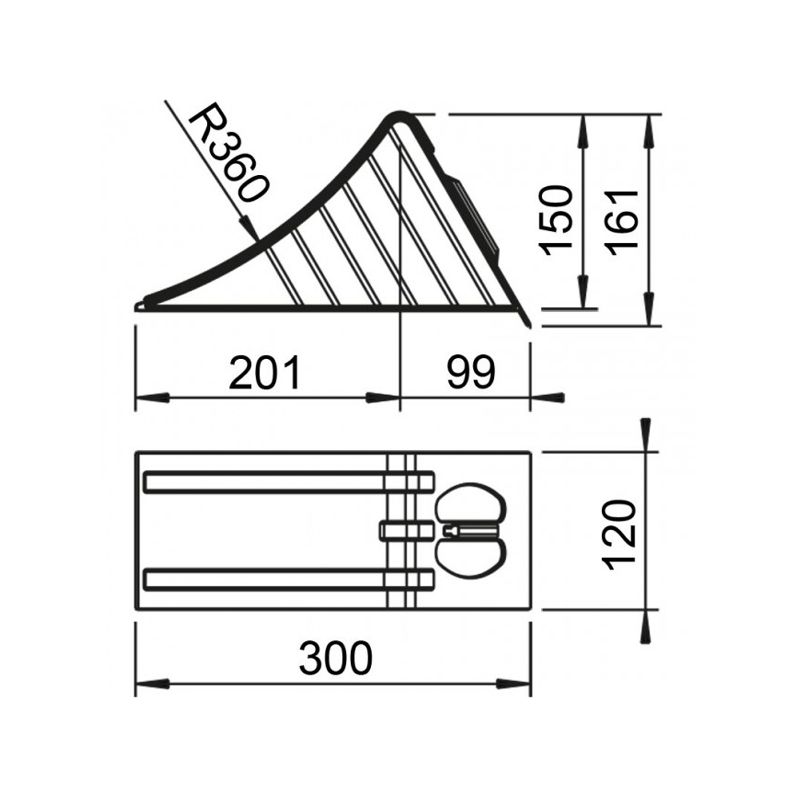 AL-KO UK 36 Unterlegkeil, 120 x 300 x 161 mm, Radlast 1600 kg, Metall verzinkt